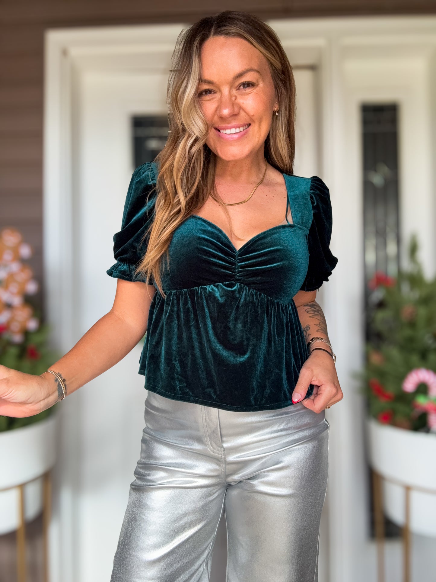 ✨ The Velvet Babydoll Top is your go-to for feminine charm and festive style — flattering, comfortable, and effortles