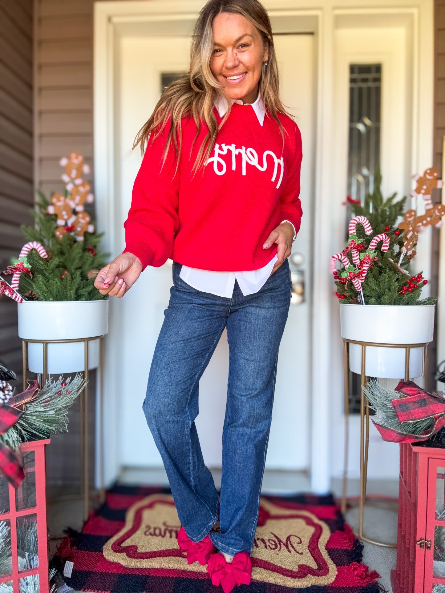 Merry Sweater | Festive Christmas Red with 'Merry' Chest Detail, Cozy & Relaxed Fit, Sizes Small–Large