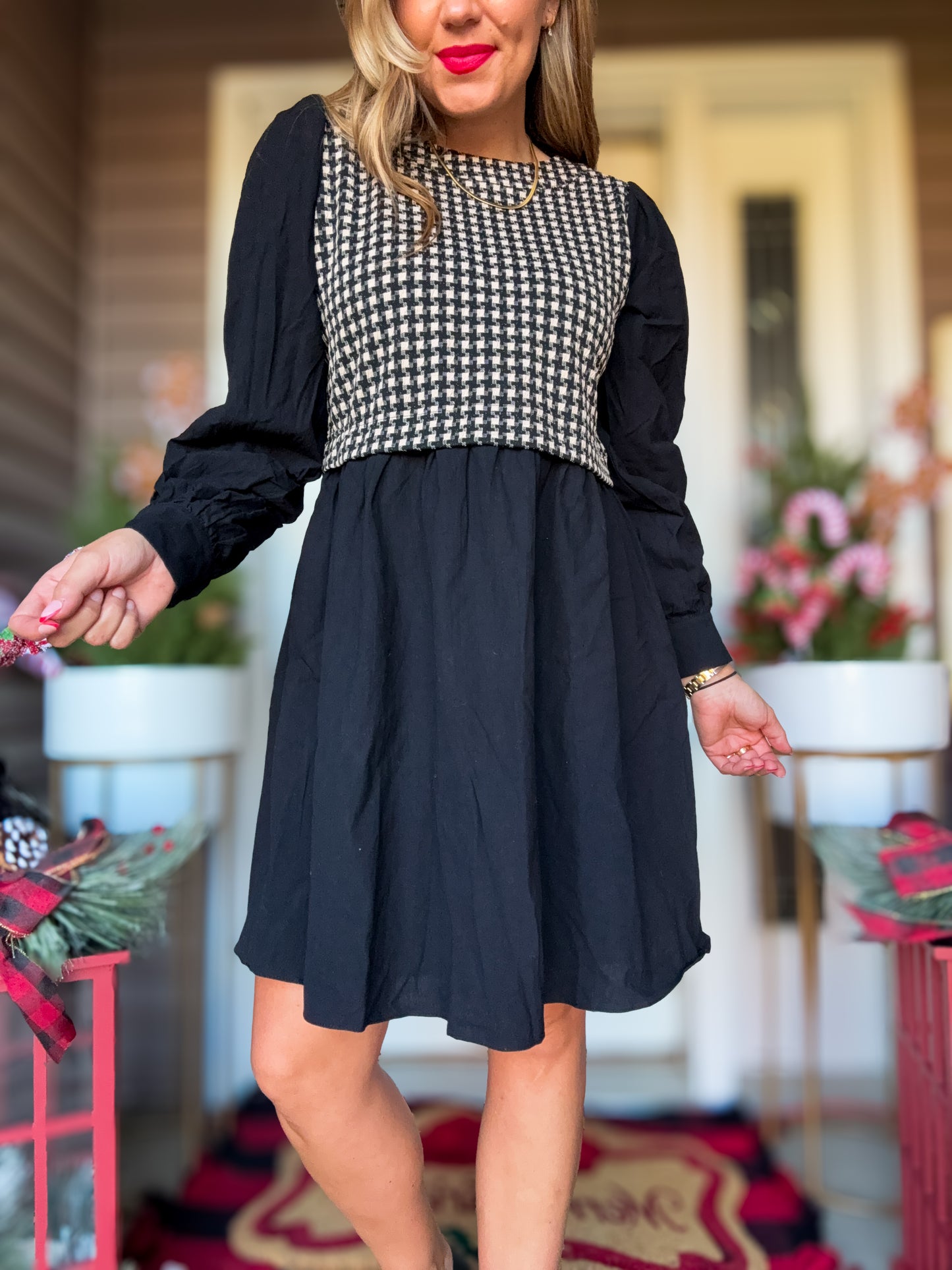 Effortlessly chic and endlessly comfortable, our Mix Media Buffalo Plaid Dress combines cozy style with elevated design. Featuring a solid black bodice and a buffalo plaid skirt, this dress delivers the perfect mix of textures for a bold yet timeless look.