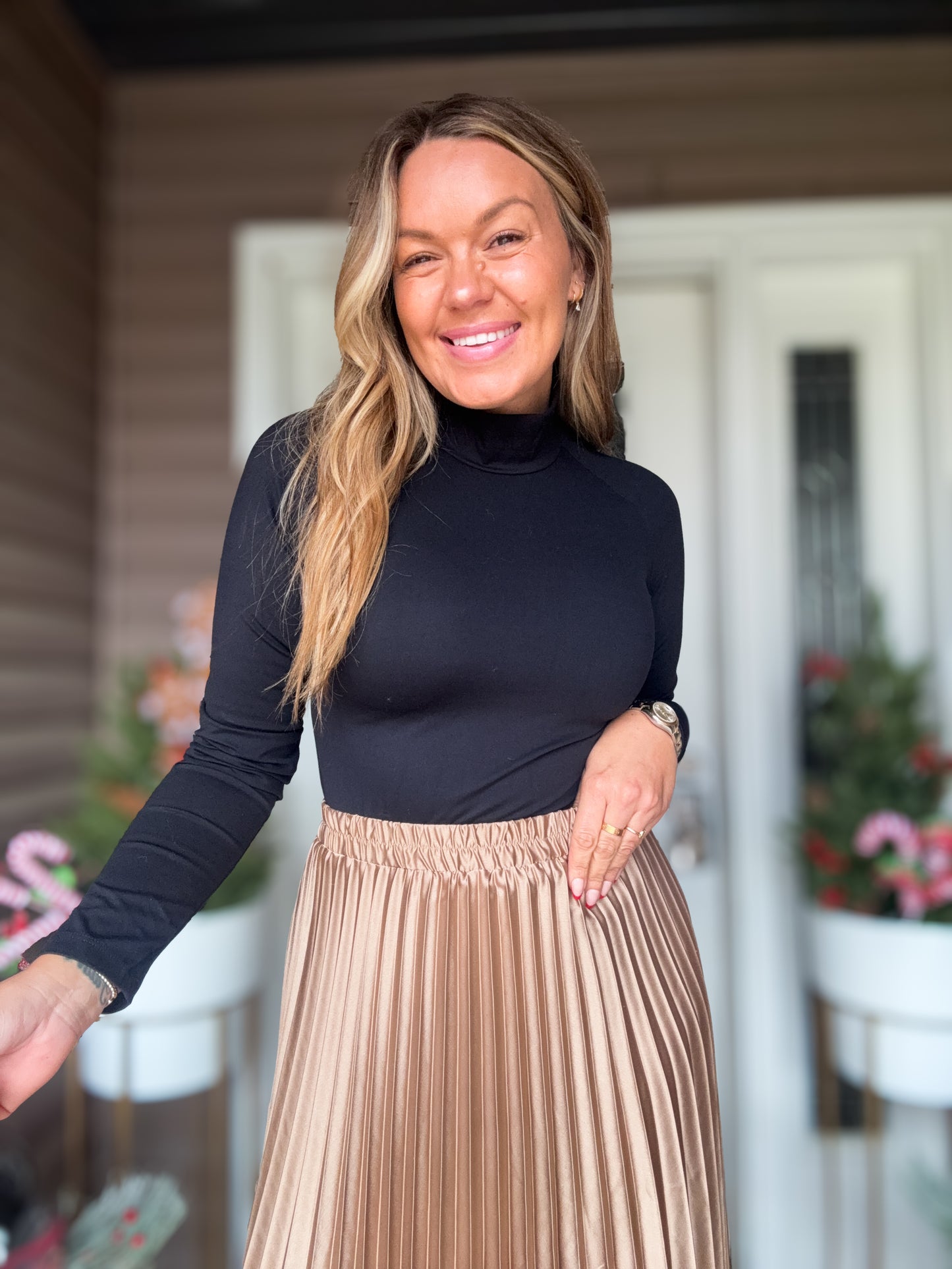 Expertly crafted, the NELLE bodysuit offers a sleek and versatile addition to your wardrobe. Made with stretch knit fabric, the mock neck bodysuit provides a comfortable fit while the snap closure ensures a secure hold. Perfect for any occasion, dress it up or down for a chic and effortless look.