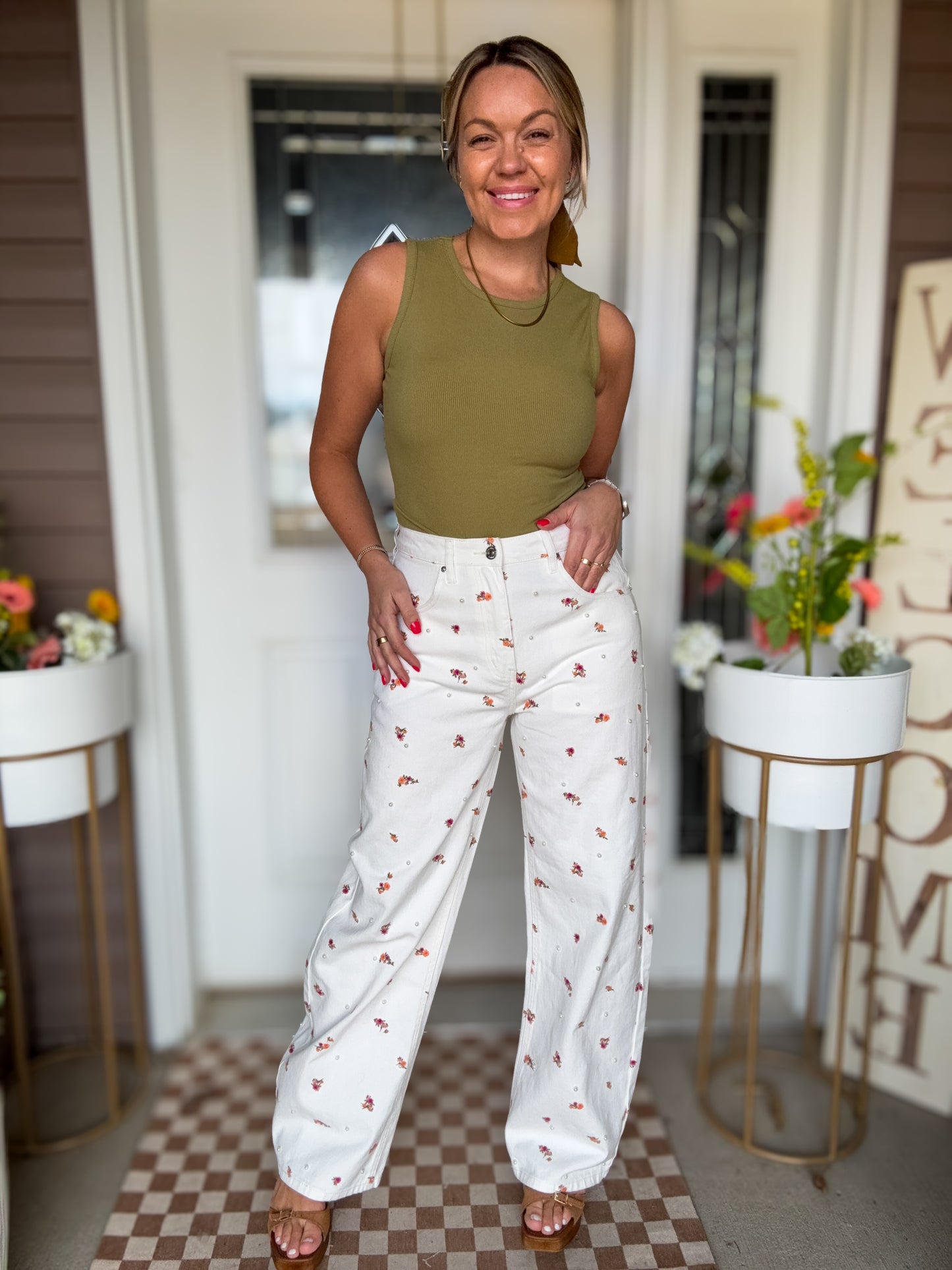 Crafted from 100% cotton, the Sydnee Jean offers a structured, vintage-inspired feel that holds its shape while delivering timeless appeal. The antique wash perfectly complements the botanical pattern, creating a look that’s both elevated and easy to wear. Finished with functional front and back pockets, these jeans balance fashion-forward design with everyday practicality.