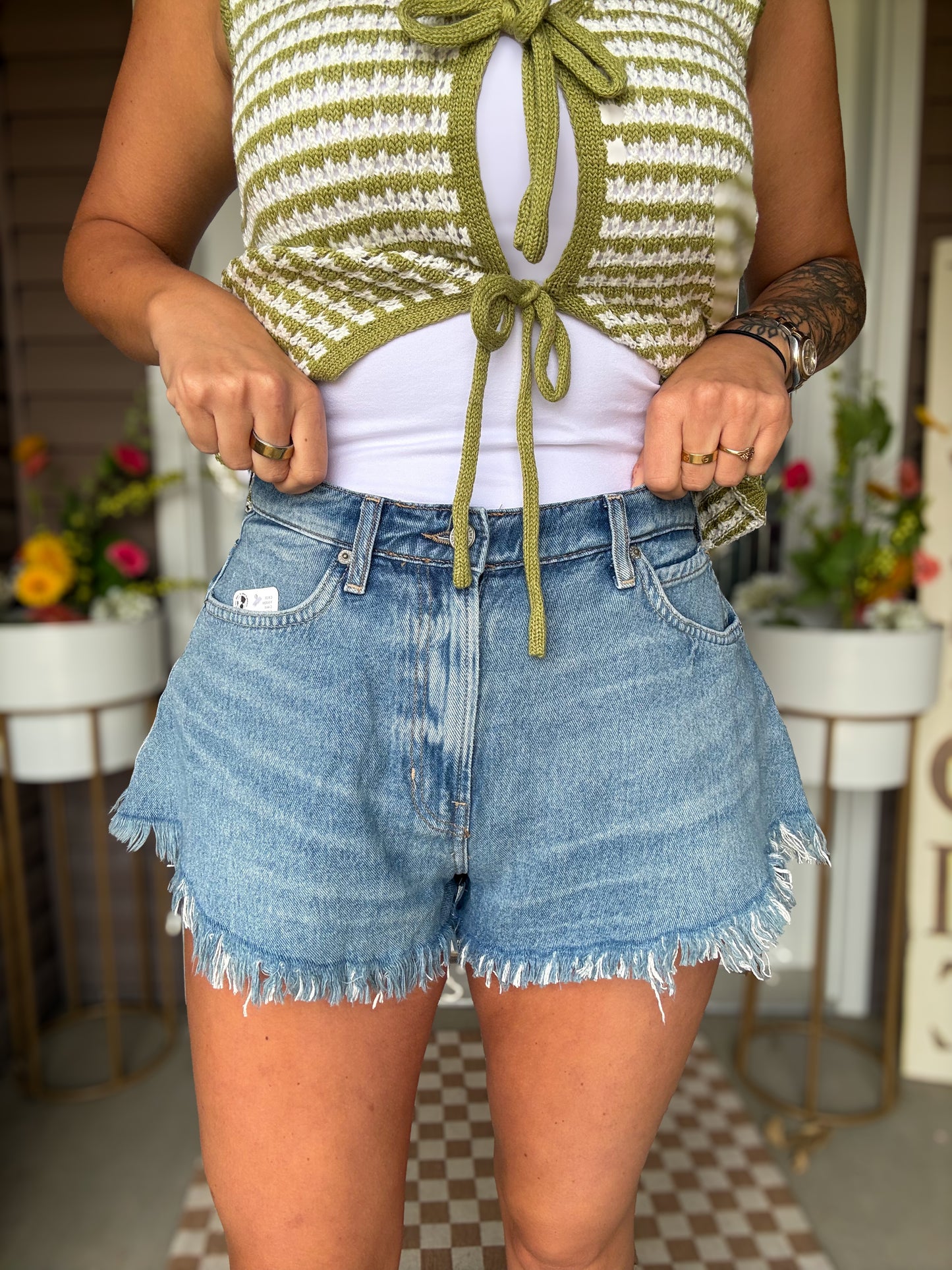 Risen High Rise Distressed Shorts