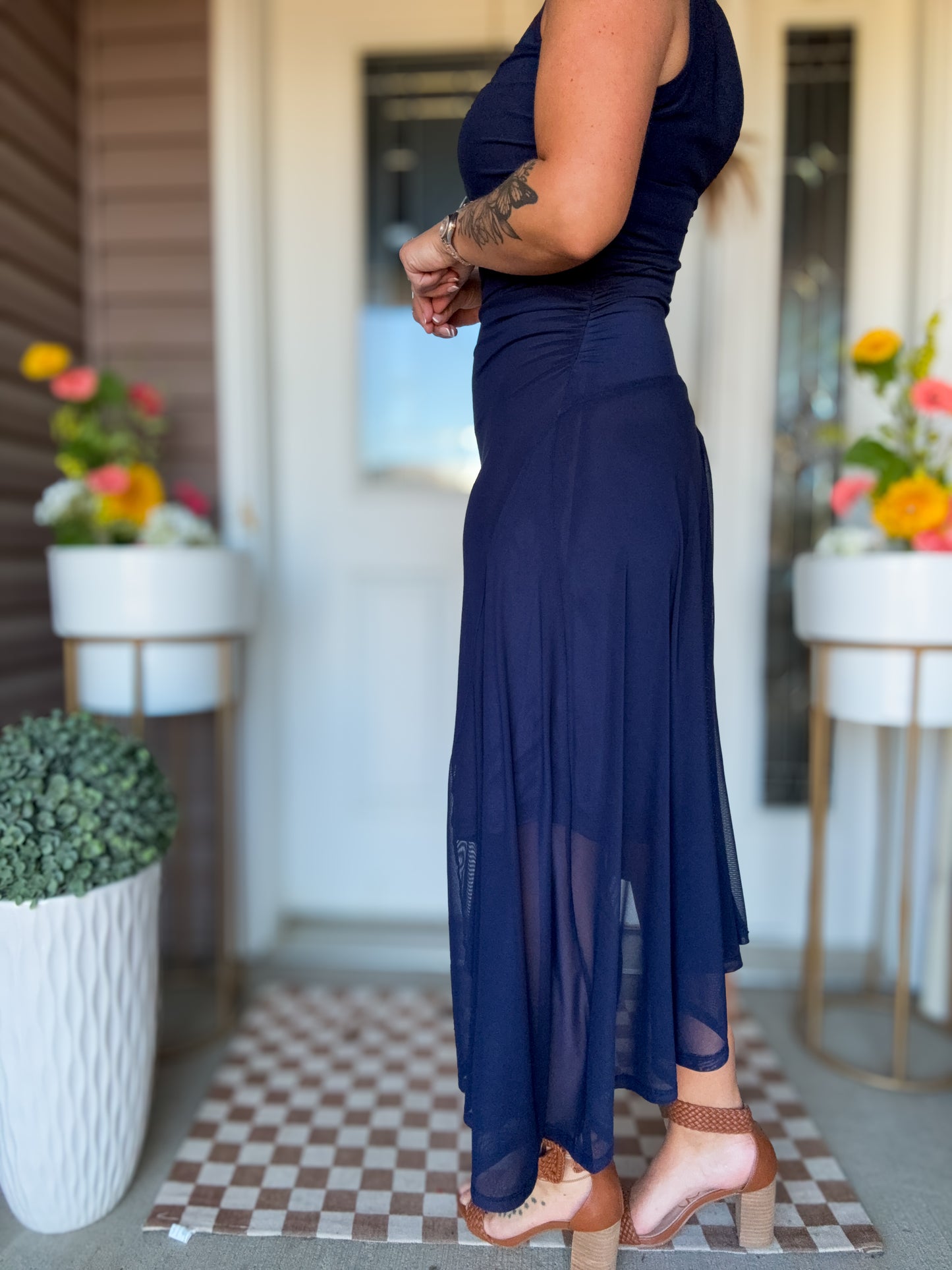 Steve Madden Laney Dress in Marine | Flowy Sleeveless Design with Back Zipper, Comfortable & Stylish