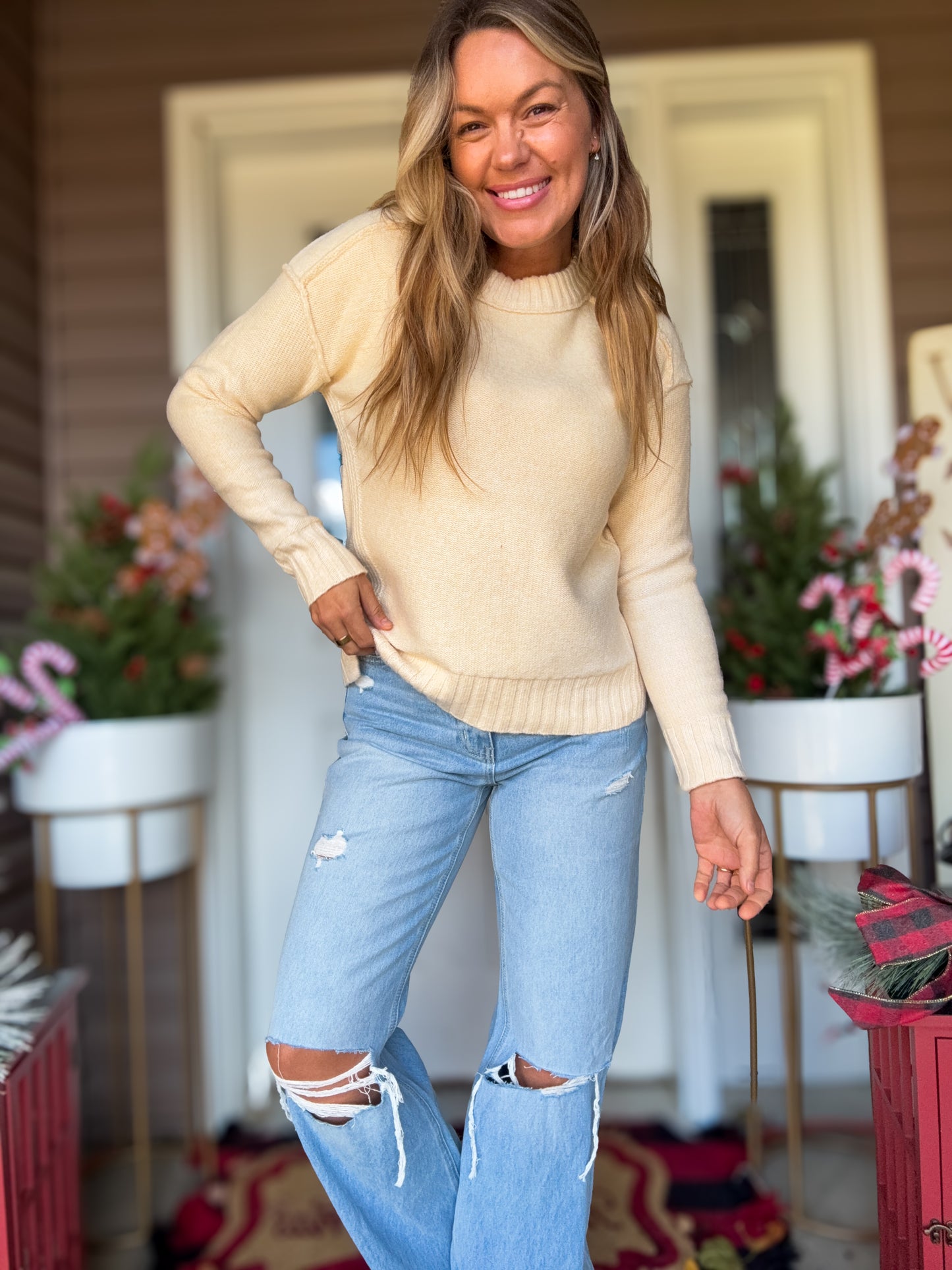 Staccato Simple Pullover Sweater | Sizes S–XL, Cozy & Soft in Almond & Lavender