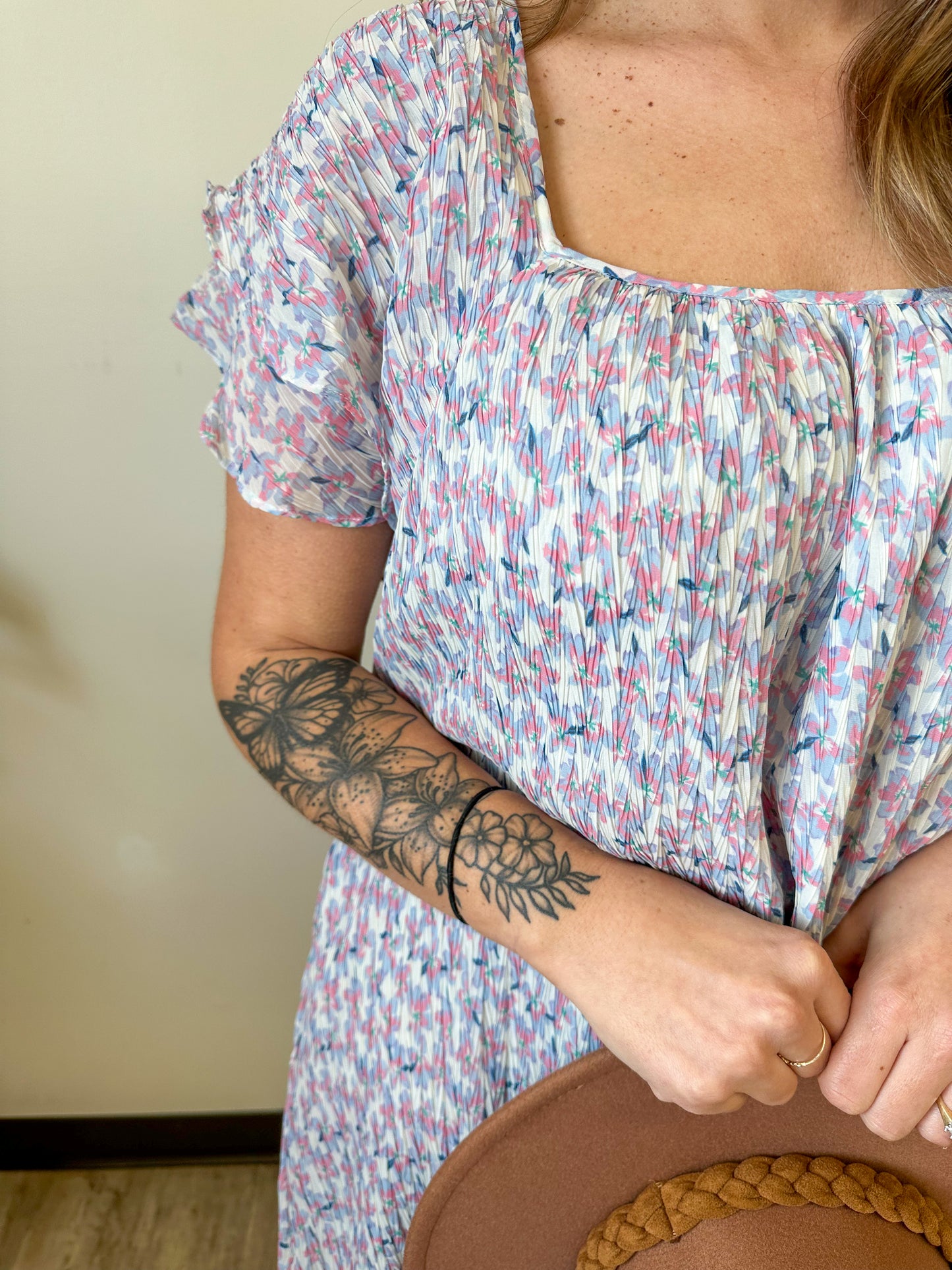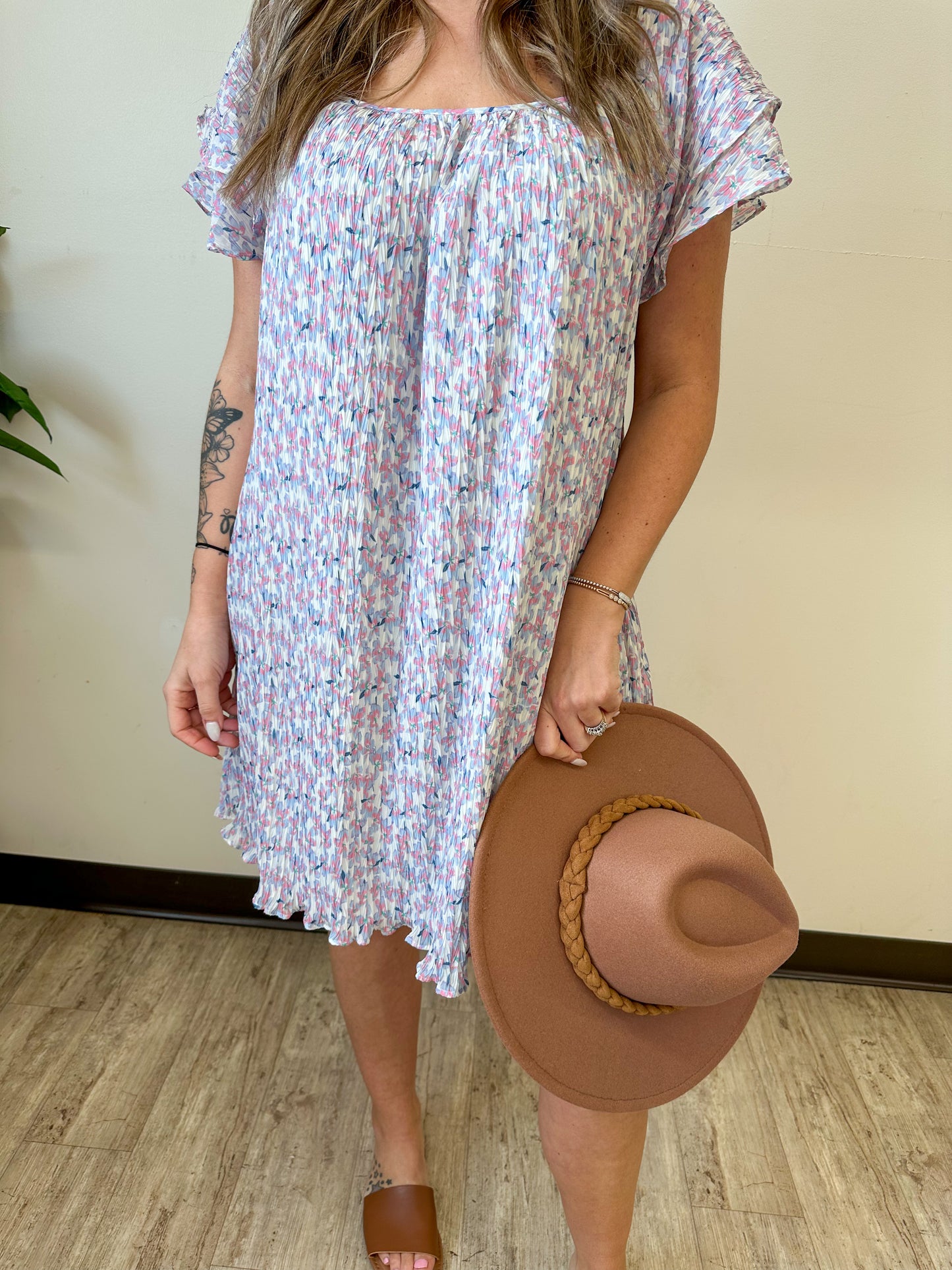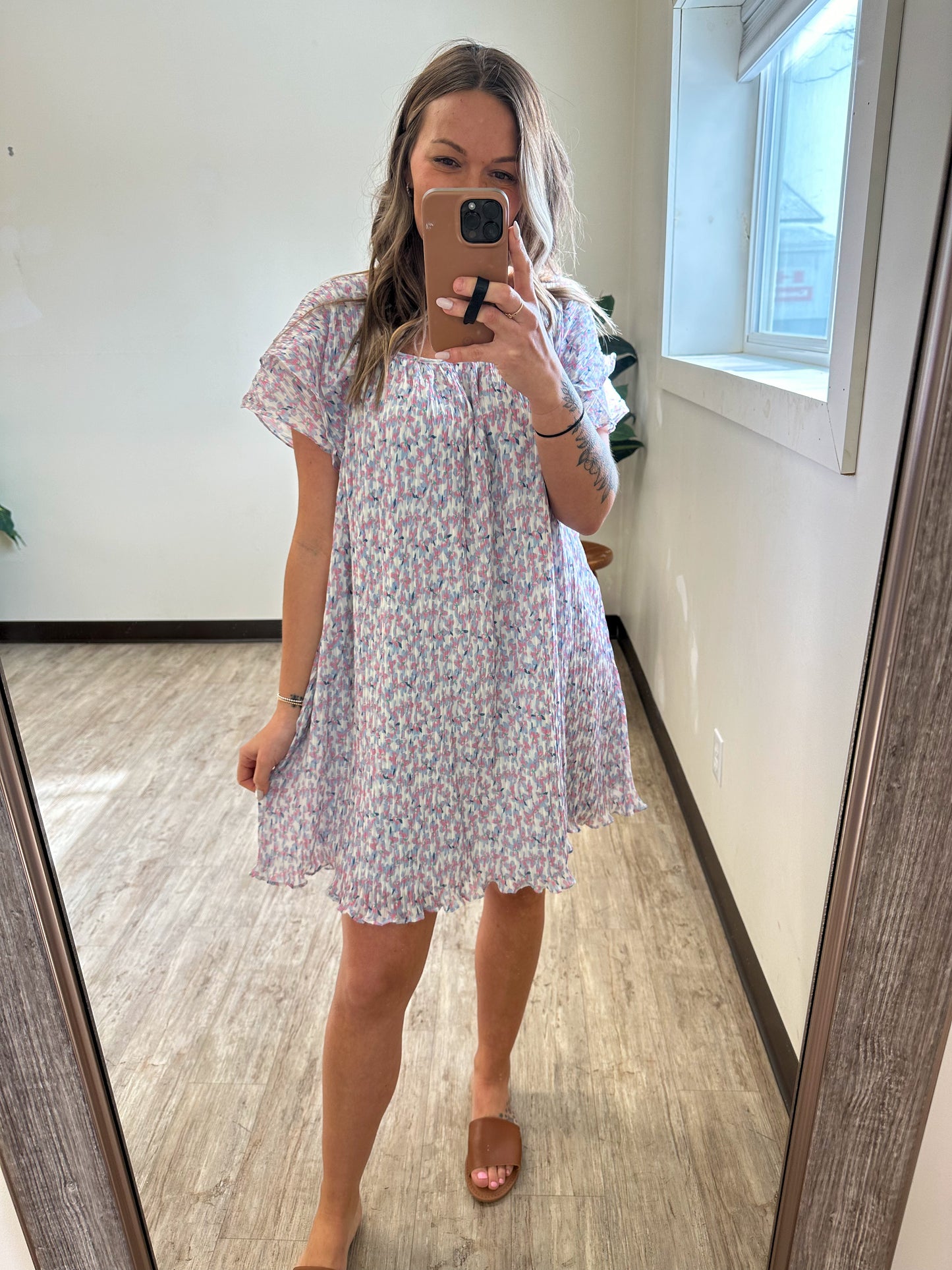 "Get ready to bloom in this flowery frock! Our Love in Bloom Dress features a pleated design, a self-back tie for a perfect fit, and a fully lined 100% polyester material. Perfect for any springtime occasion. Time to embrace your inner flower child!"