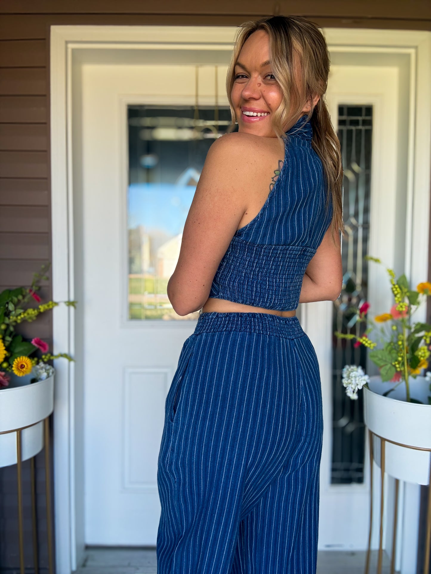 The Steve Madden Winnie Top in Mixed Indigo is a modern, sculptural crop crafted from a breathable 55/45 linen-rayon blend. Featuring cutaway shoulders, a twisted neckline, and a back zip closure, Winnie delivers a sleek, fitted 17" silhouette that elevates warm-weather outfits. Pair with high-rise denim or tailored shorts for an effortless daytime look, or style with a coordinating skirt and statement earrings for evening polish. Lightweight and textural, this top adds contemporary edge and refined shape to seasonal wardrobes.