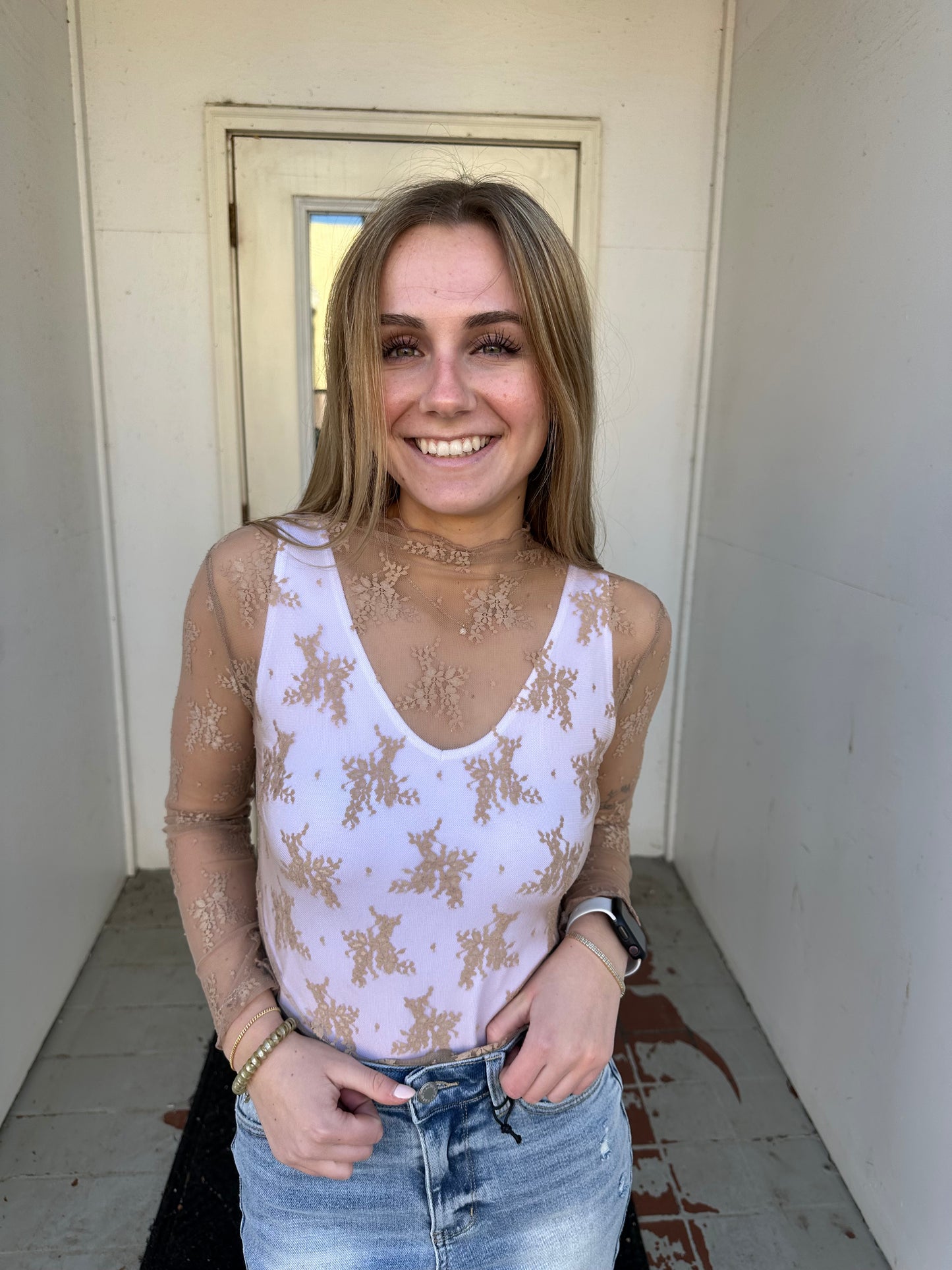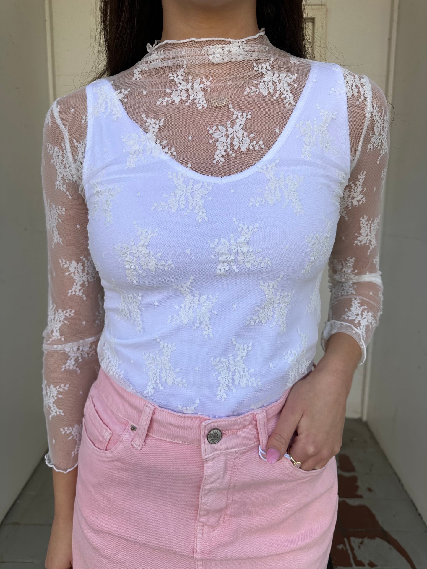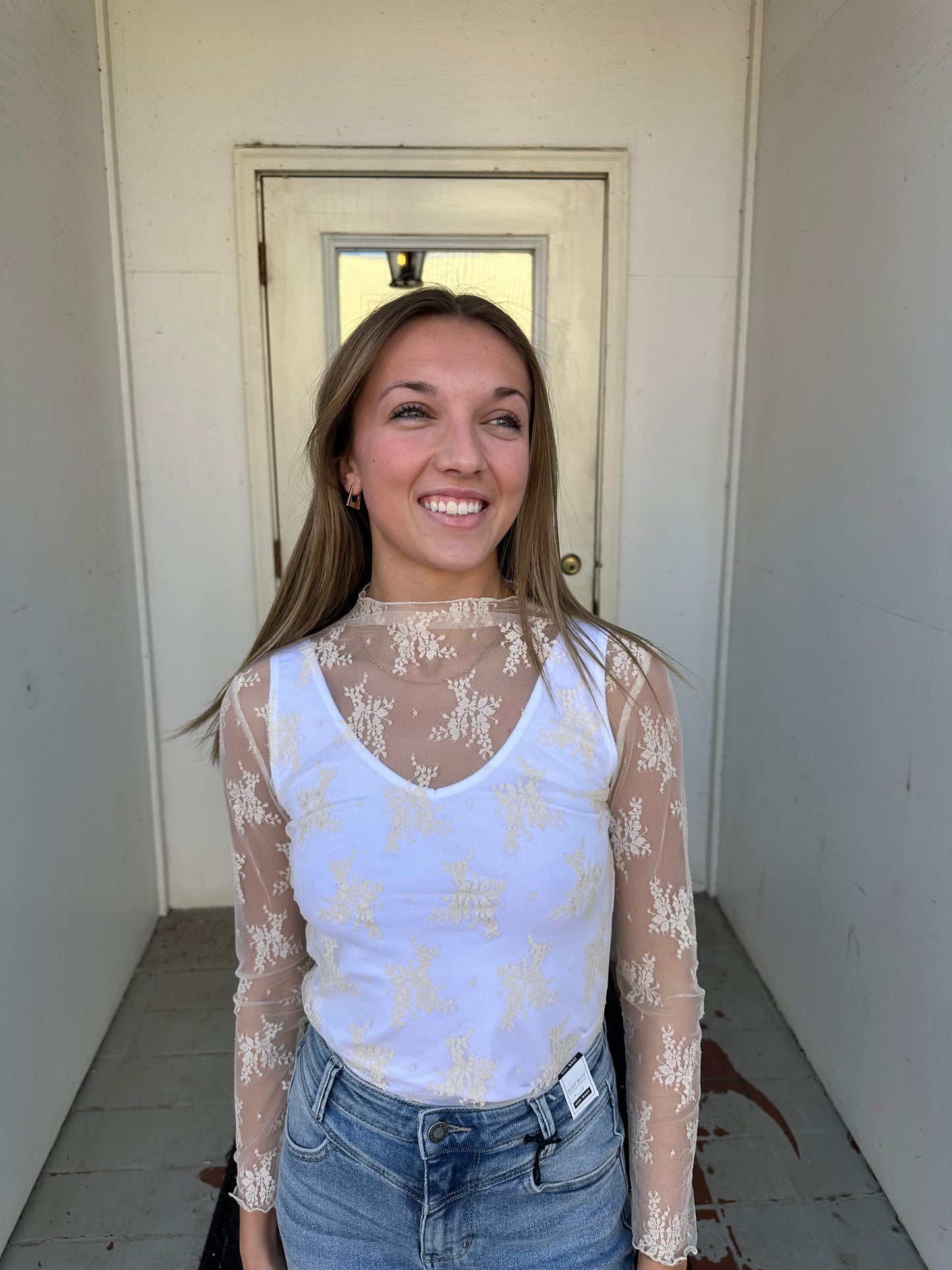 Embrace your inner nature with our Lace Long Sleeve! Made with delicate lace mesh, this fitted top will elevate your style and add a touch of elegance to any outfit. With long sleeves to keep you warm and sizes ranging from Small to XL, you'll be sure to find the perfect fit.
